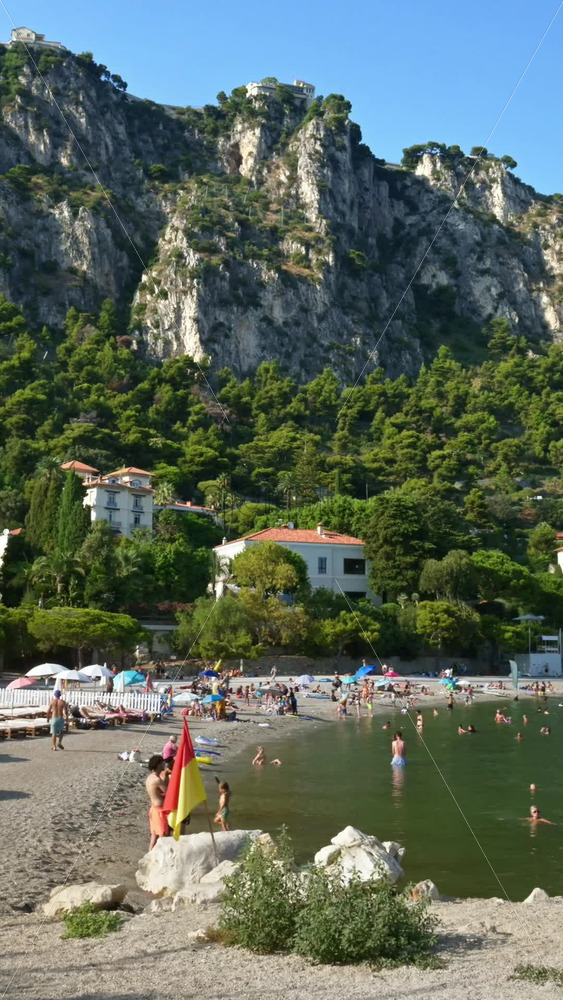 Beaulieu-sur-Mer, France – July 5, 2024: People swimming and relaxing at the Petite Afrique Beach Royalty Free Stock Video Footage