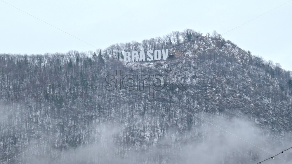 Video Brasov writing on the top of the Tampa mountain in the snow Royalty Free Stock Video Footage