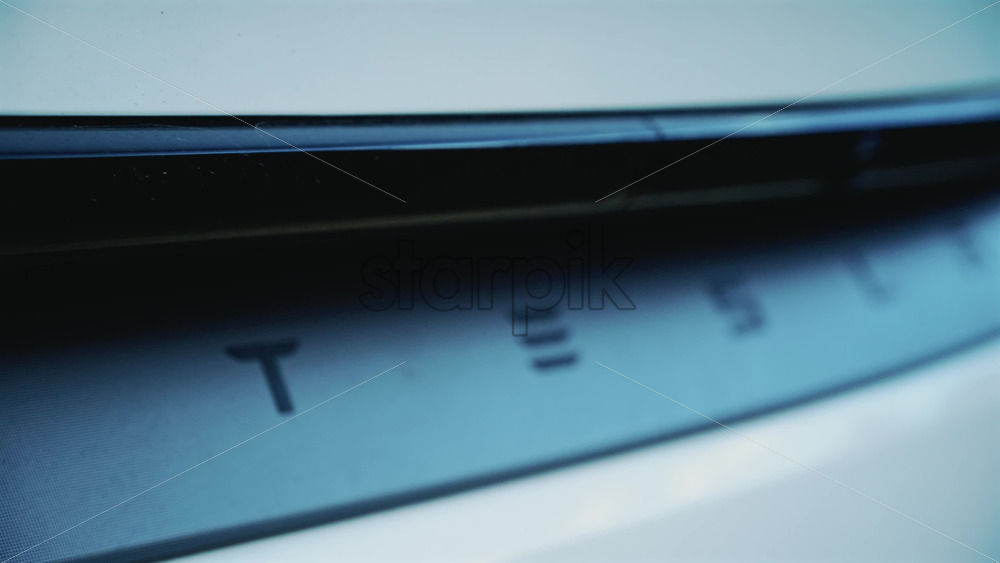 Cannes, France – October 16, 2025: Close up of a Tesla rear detail covered in raindrops Royalty Free Stock Video Footage