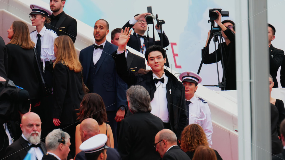 Cannes, France – May 13, 2025: Gong Jun waving on the red carpet at the Cannes Film Festival Royalty Free Stock Video Footage