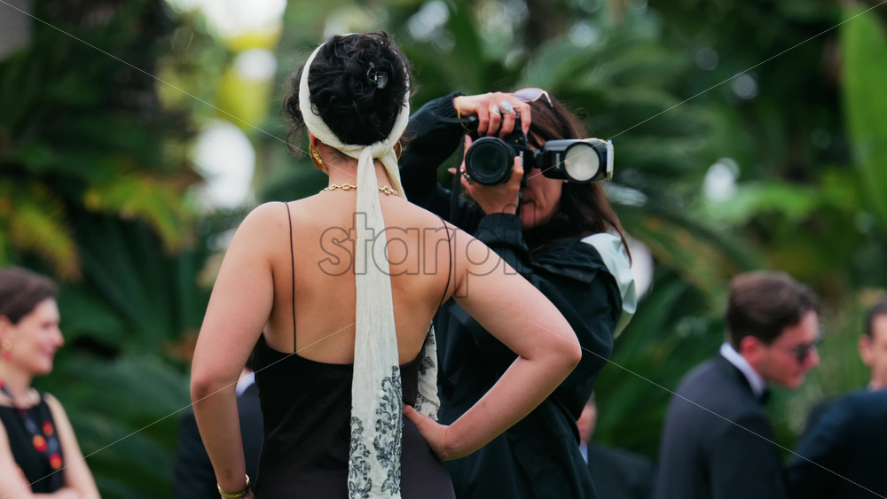 Cannes, France – May 13, 2025: People taking pictures in the Palace of Festivals gardens at the Cannes Film Festival Royalty Free Stock Video Footage