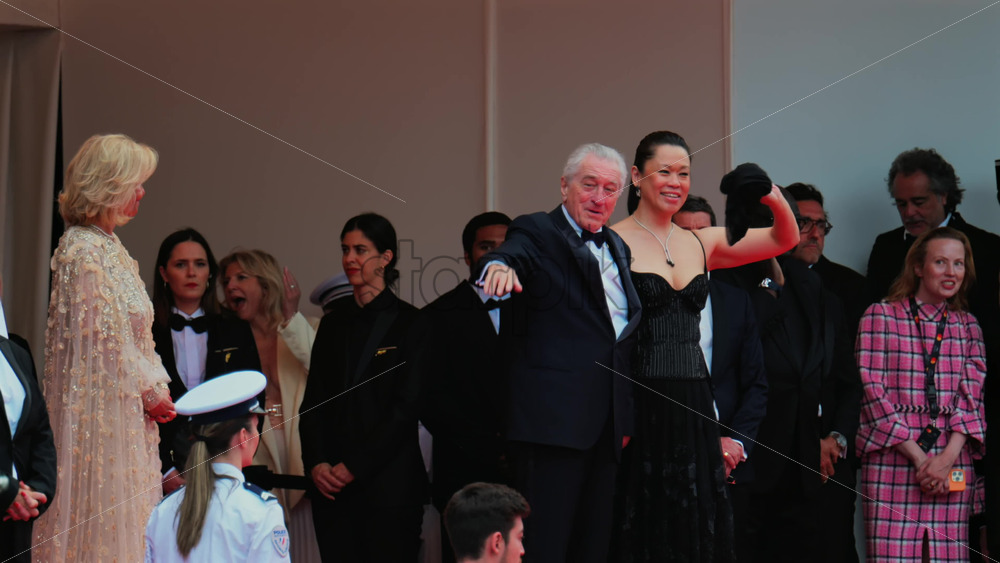 Cannes, France – May 13, 2025: Robert De Niro and Tiffany Chen waving on the red carpet at the Cannes Film Festival Royalty Free Stock Video Footage