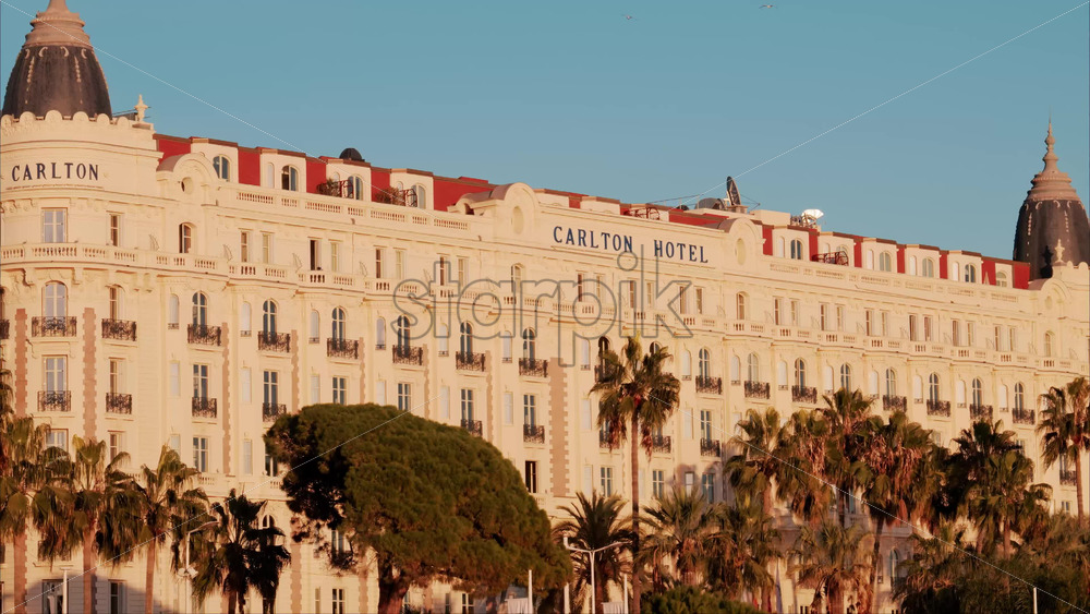 video Cannes, France – November 4, 2024: Distant view of the Carlton Hotel on the coast of the city Royalty Free Stock Video Footage