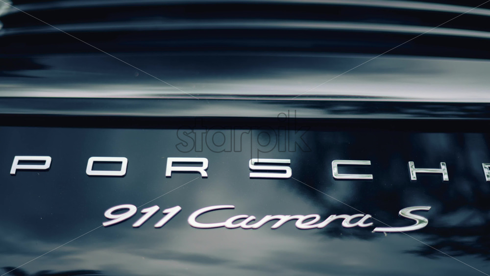 Cannes, France – October 16, 2025: Close up of the rear of a Porsche 911 Carrera S luxury sports car with metallic reflections Royalty Free Stock Video Footage