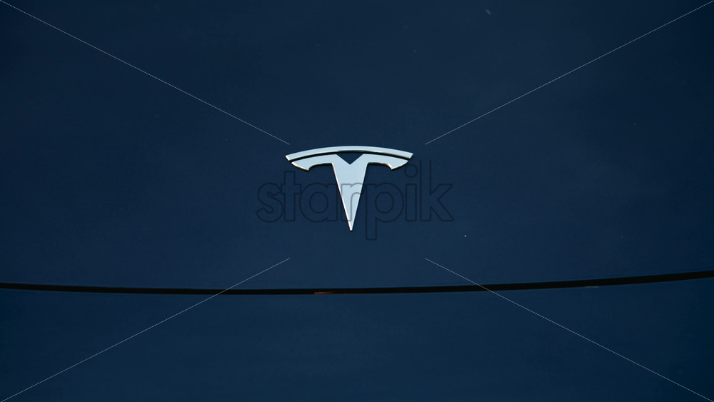 Cannes, France – October 20, 2025: Cinematic close up of a Tesla car hood reflecting the silhouette of a tree at sunset Royalty Free Stock Video Footage
