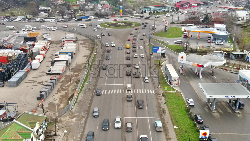 CHISINAU, MOLDOVA – JANUARY 1, 2021: Aerial drone view of Chisinau. Road with roundabout intersection and multiple moving cars, residential and commerical buildings, bare trees. Moldova Royalty Free Stock Video Footage Royalty Free Stock Video Footage