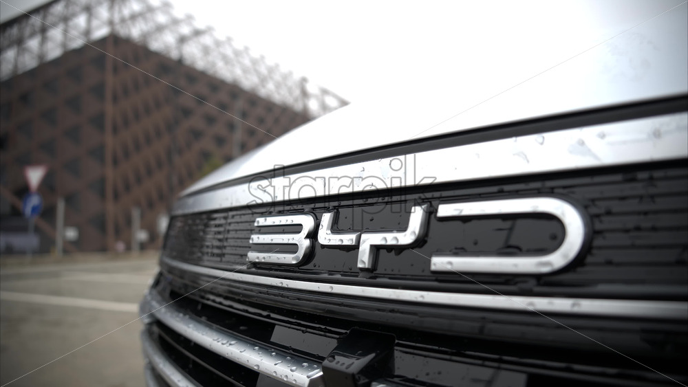 video Chisinau, Moldova – January 30, 2025: BYD Destroyer 05 plug-in hybrid electric car. Close-up logo Royalty Free Stock Video Footage