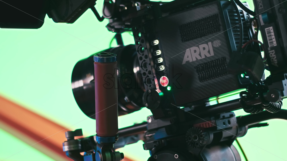 CHISINAU, MOLDOVA – MARCH 28, 2021: Professional Arri video camera on the movie set on a tripod Royalty Free Stock Video Footage