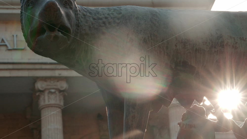 Chisinau, Moldova -April 17, 2021: Capitoline Wolf monument in front of the National History Museum of Moldova in the city centre Royalty Free Stock Video Footage