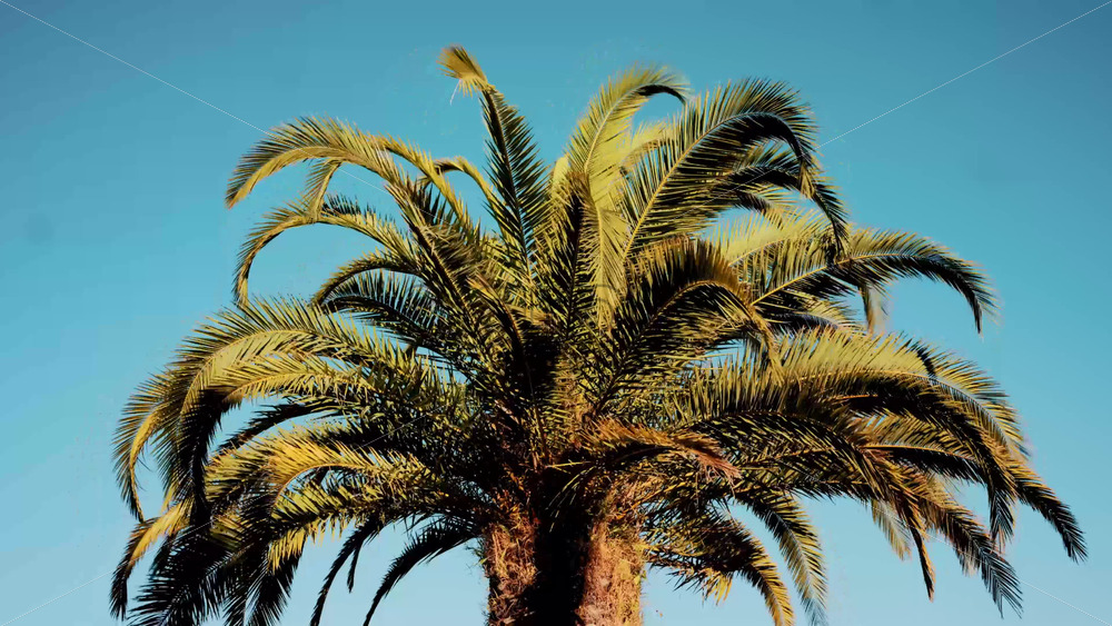 Tropical palm tree with vibrant, oversized leaves swaying in the gentle jungle breeze