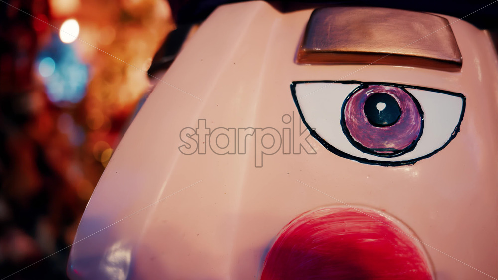 Video Close up of a big nutcracker figurine with blurry lights on the background Royalty Free Stock Video Footage
