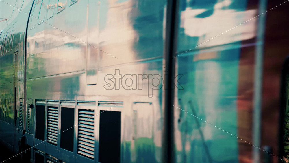 video Close up of a blue train moving on the rails near a station in France Royalty Free Stock Video Footage