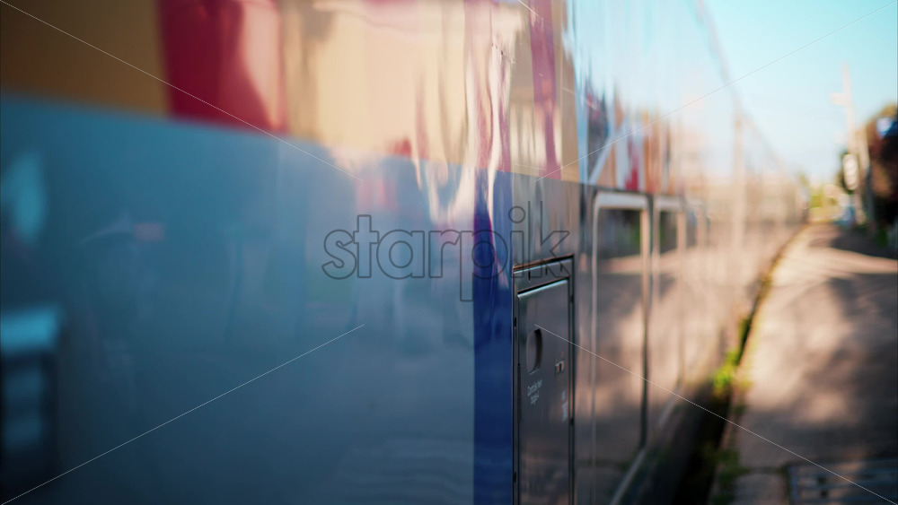 video Close up of a blue train stopping at the station in France, with people waiting to enter it Royalty Free Stock Video Footage