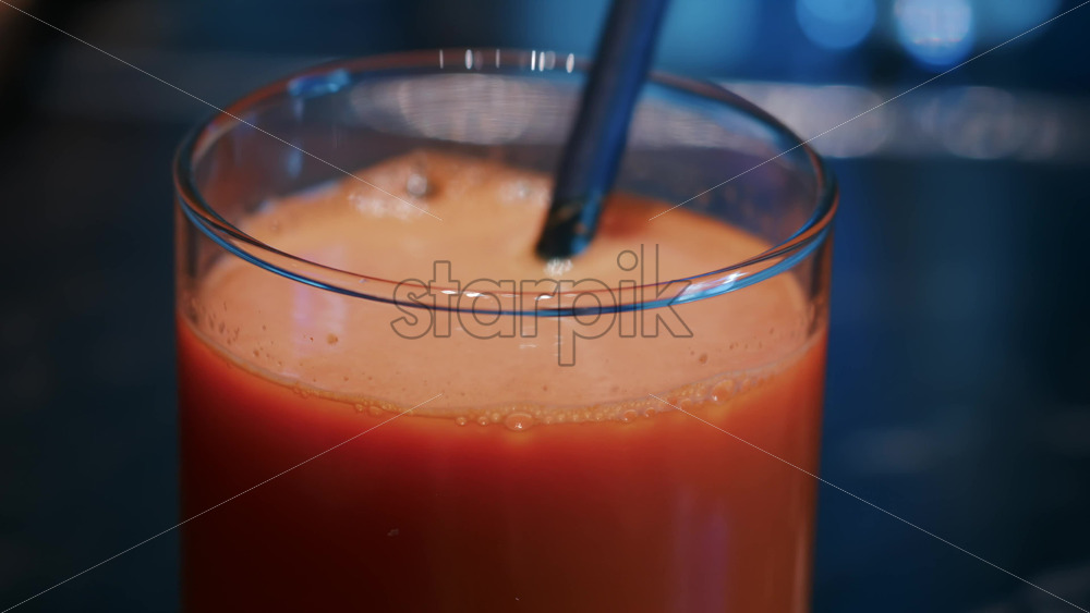 Close up of a bright orange juice glass with a black straw Royalty Free Stock Video Footage