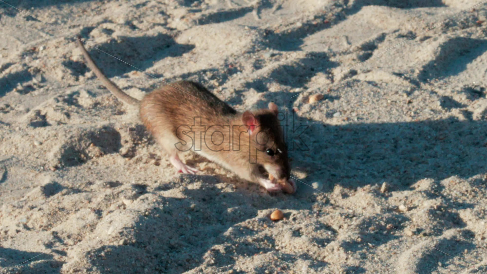 Close up of a brown rat eating scattered peanuts on sand in warm sunlight Royalty Free Stock Video Footage