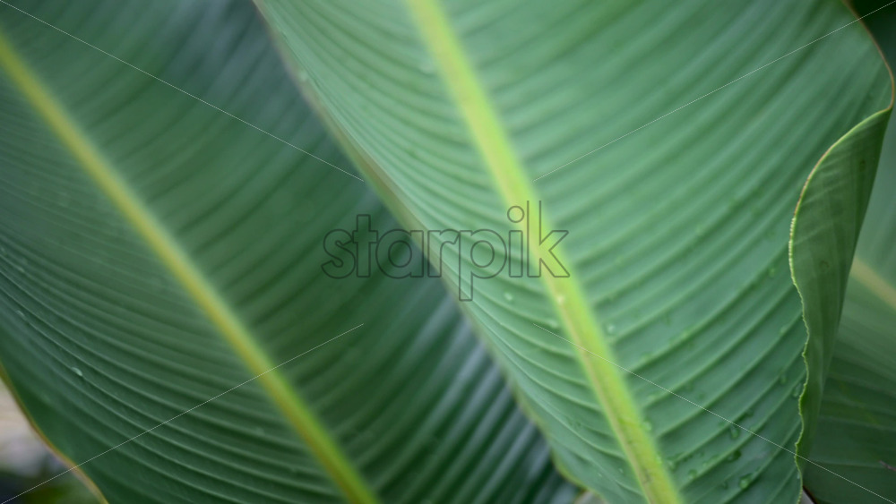 Close up of a green tropical leaf with visible veins and water droplets Royalty Free Stock Video Footage