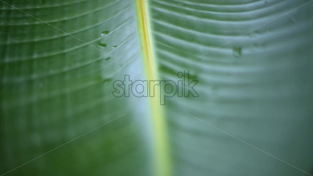 Close up of a green tropical leaf with visible veins and water droplets Royalty Free Stock Video Footage