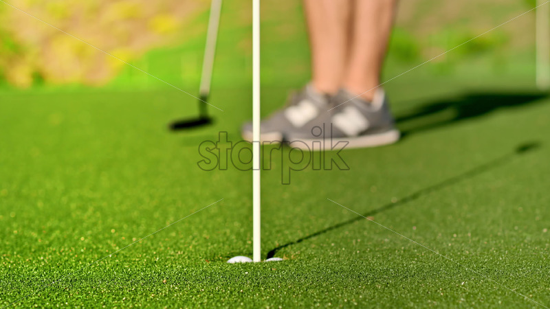 VIDEO Close up of a man getting a golf ball into the hole Royalty Free Stock Video Footage