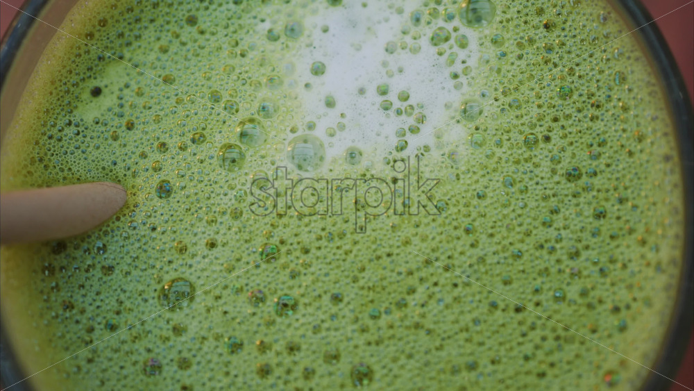 Close up of a smooth matcha latte with vibrant green foam in a white cup Royalty Free Stock Video Footage