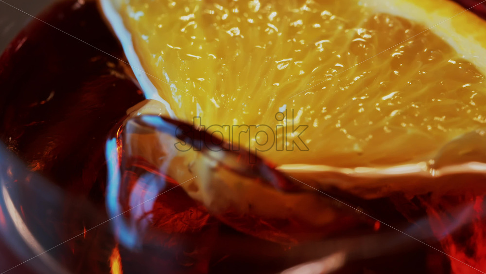 Close up of a Negroni cocktail with orange slice and ice cubes on a wooden table Royalty Free Stock Video Footage