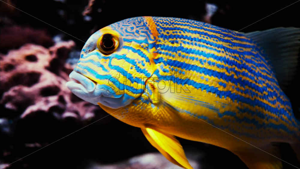 Video Close up of a sailfin snapper fish swimming near coral reefs Royalty Free Stock Video Footage