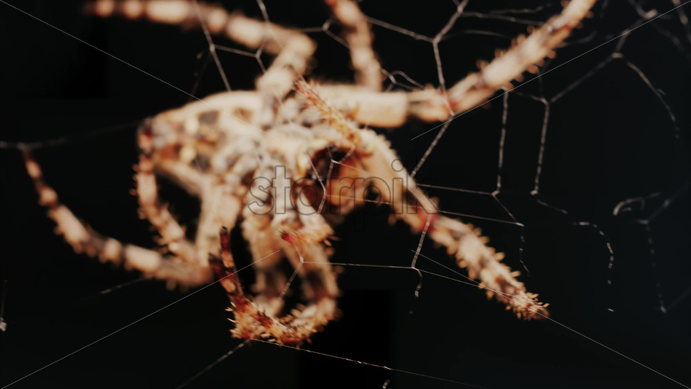 Home » Shop » 1 Video » Video – Close up of a spider sitting in its web, showing intricate details of its body and fine silk threads