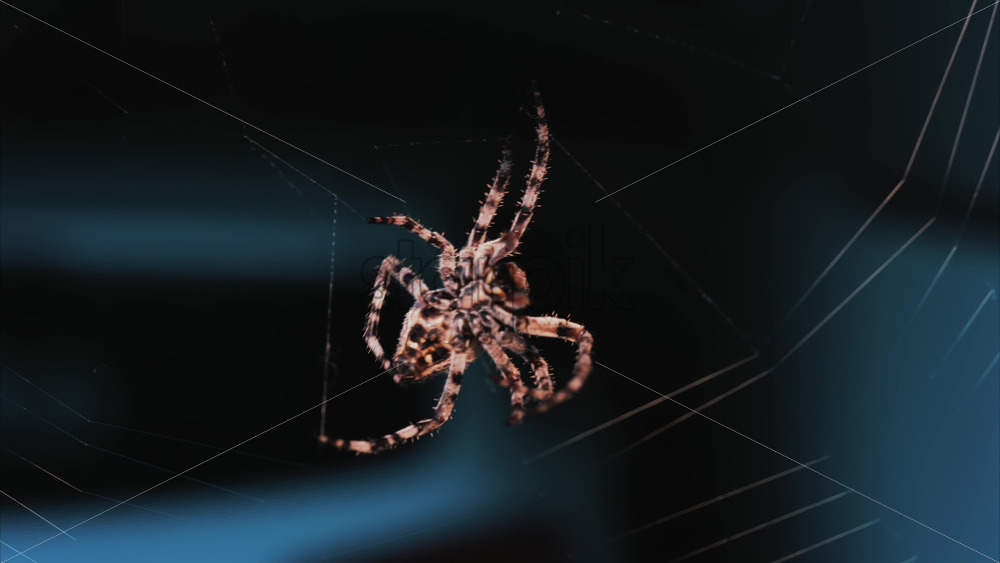 Home » Shop » 1 Video » Video – Close up of a spider sitting in its web, showing intricate details of its body and fine silk threads