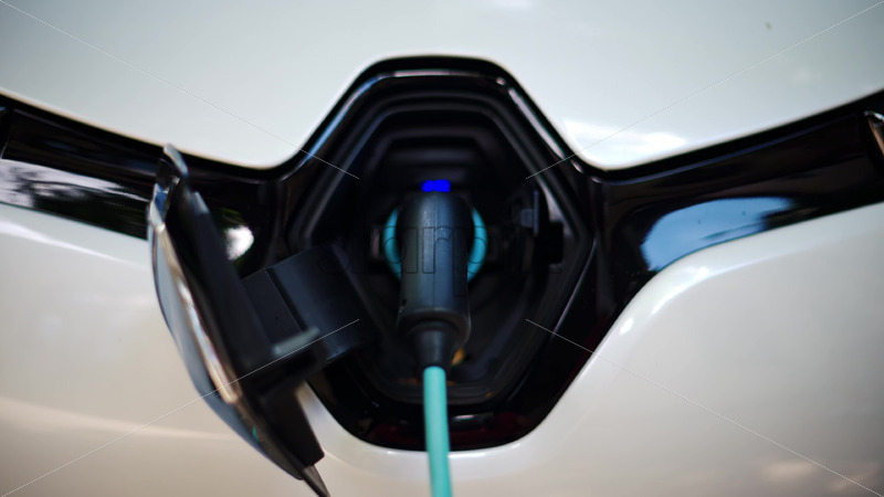 VIDEO Close up of a white electric car charging Royalty Free Stock Video Footage