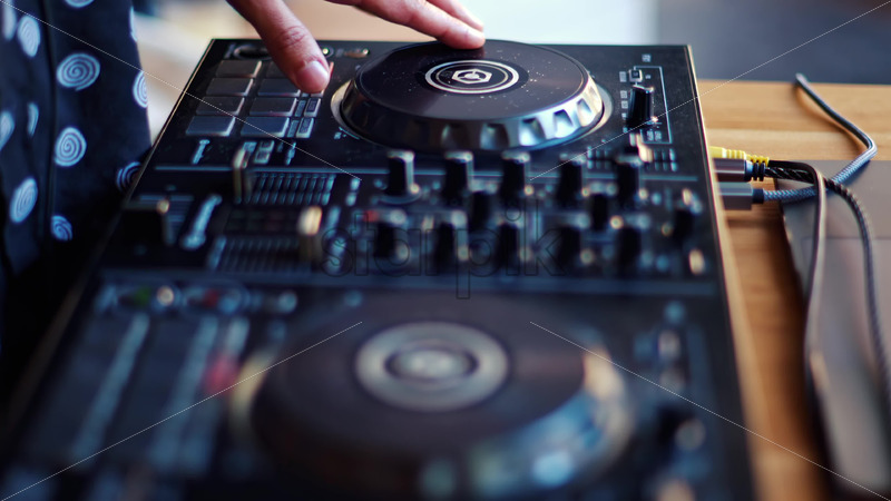 VIDEO Close up of a woman touching the buttons of a DJ controller Royalty Free Stock Video Footage