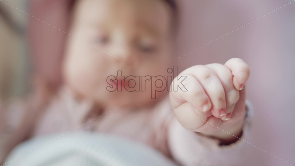 Close up of baby’s tiny hand reaching out gently in soft pastel tones Royalty Free Stock Video Footage