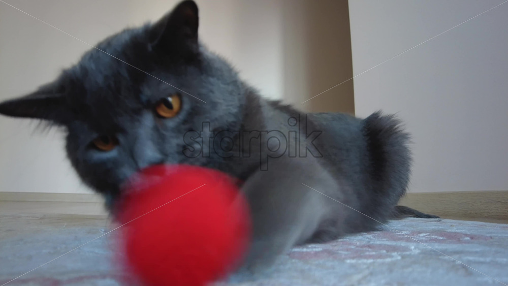 Close up of British Shorthair cat playing on a carpet Royalty Free Stock Video Footage