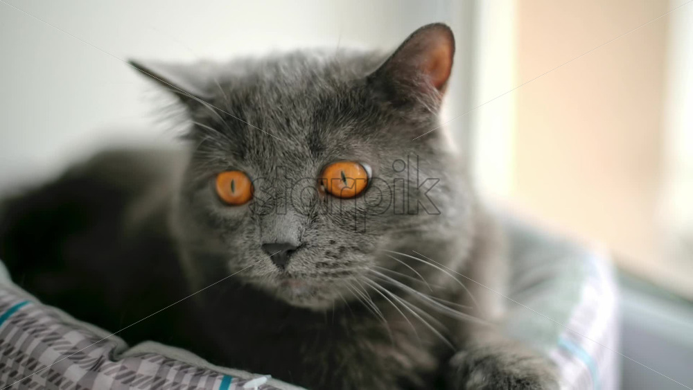 Close up of British Shorthair cat resting in it’s bed Royalty Free Stock Video Footage