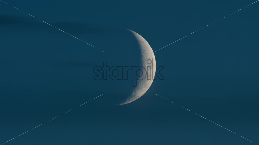 Close up of crescent moon illuminated against a deep blue sky Royalty Free Stock Video Footage