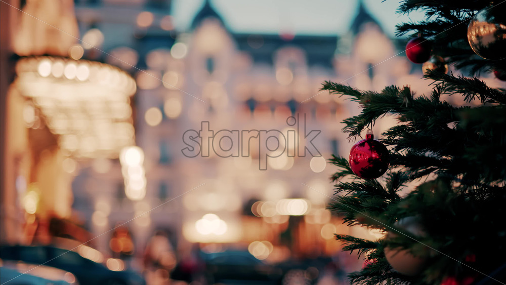 Video Monte Carlo , Monaco -December 23, 2024: Close up of decorations on a Christmas tree in front of the Monte Carlo Casino Royalty Free Stock Video Footage