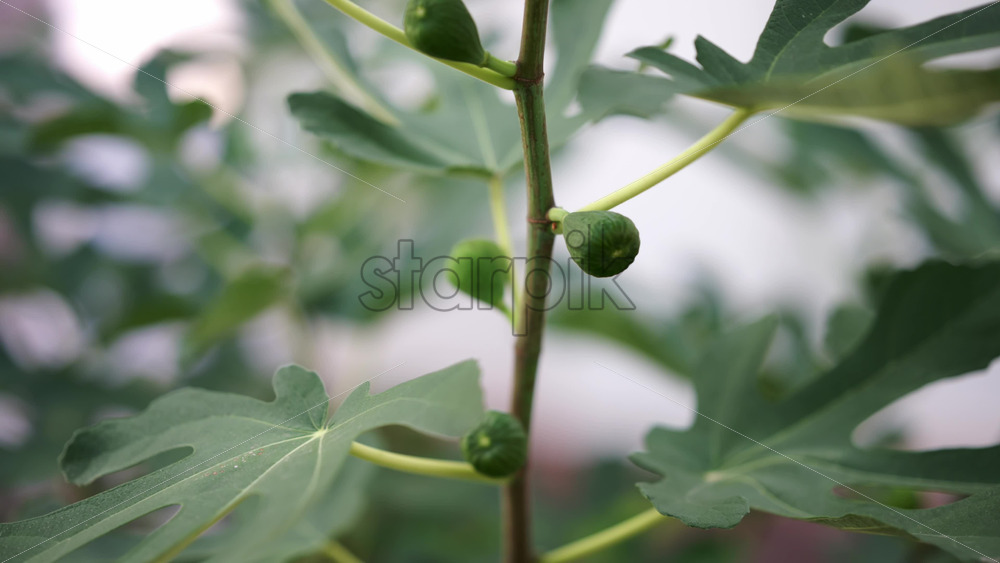 Close up of fresh green figs growing on a tree branch in a garden Royalty Free Stock Video Footage