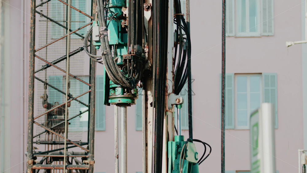 Close up of industrial drilling equipment with hydraulic cables and metal framework Royalty Free Stock Video Footage