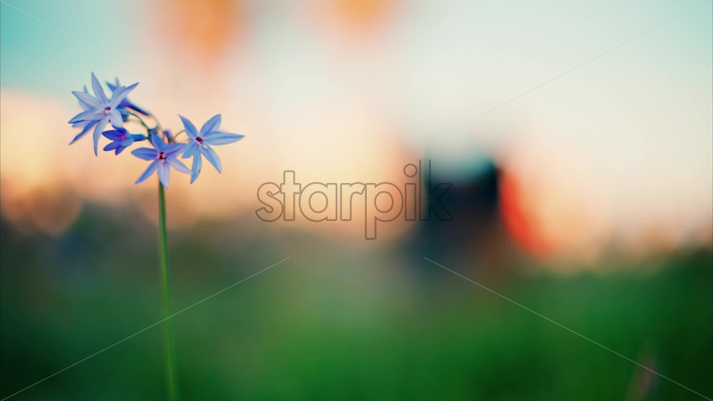 video Close up of purple flowers with a blurred view of the Jardin des Poetes garden in Antibes, France at sunset Royalty Free Stock Video Footage