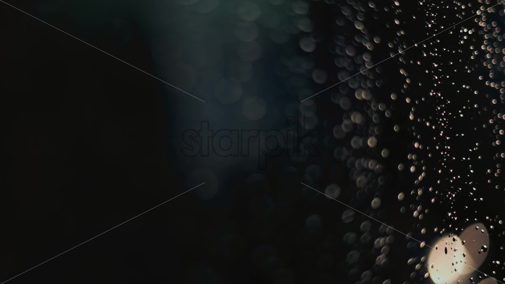 Home » Shop » 1 Video » Video – Close up of raindrops on a glass window, softly illuminated by blurred bokeh lights in the background