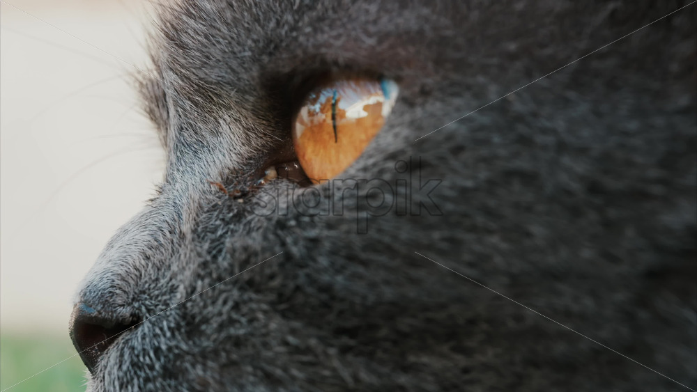 Close up of a grey British Shorthair cat’s golden eyes with detailed fur and sharp reflection in the iris Royalty Free Stock Video Footage