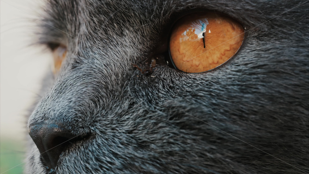 Close up of a grey British Shorthair cat’s golden eyes with detailed fur and sharp reflection in the iris Royalty Free Stock Video Footage