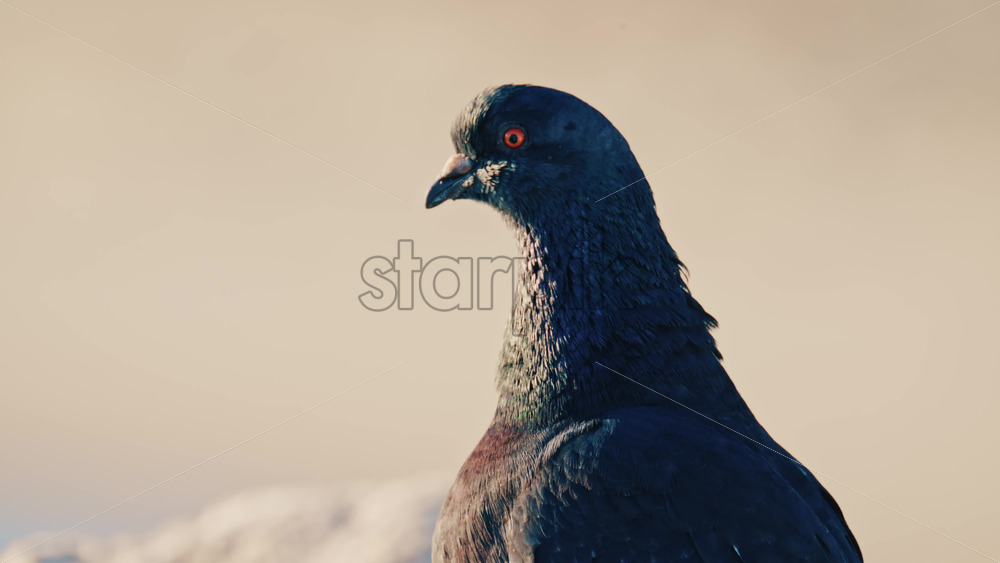 Close up profile of a pigeon with detailed feathers and sharp eye focus against a soft background Royalty Free Stock Video Footage