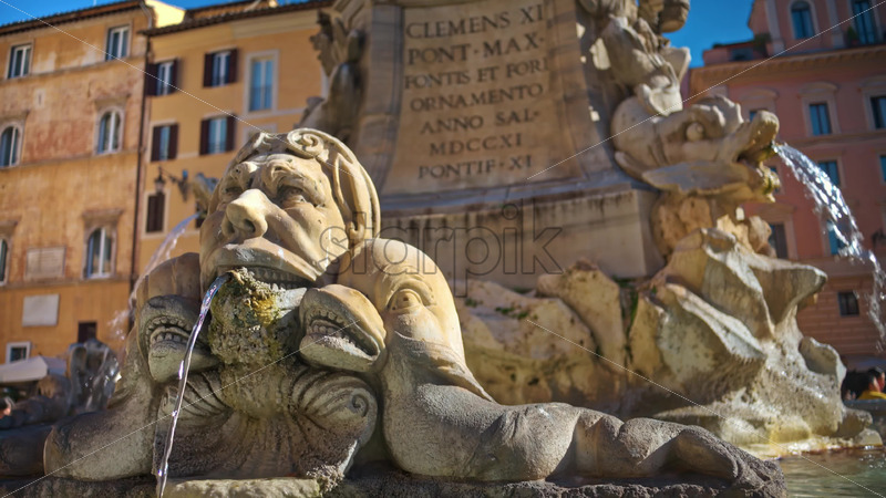 VIDEO Rome, Italy – February 13, 2024: Close up view of the Fountain of the Pantheon in sunlight. Slow motion Royalty Free Stock Video Footage