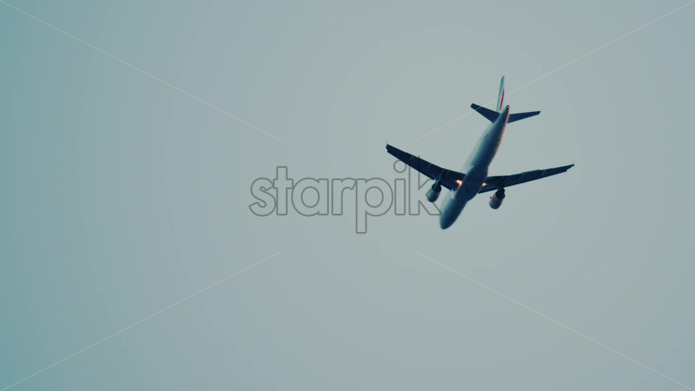 Cannes, France – October 10, 2025: A passenger jet soars high in the sky with light clouds in the background Royalty Free Stock Video Footage
