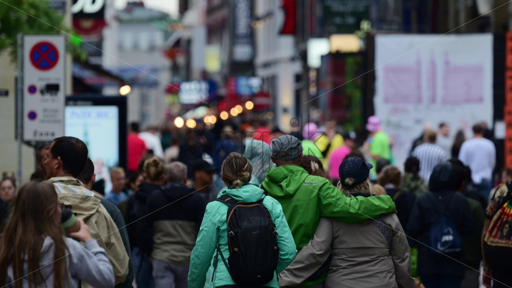 Copenhagen, Denmark – August 3, 2025: People walking on a busy pedestrian street with blurred city lights in the background Royalty Free Stock Video Footage