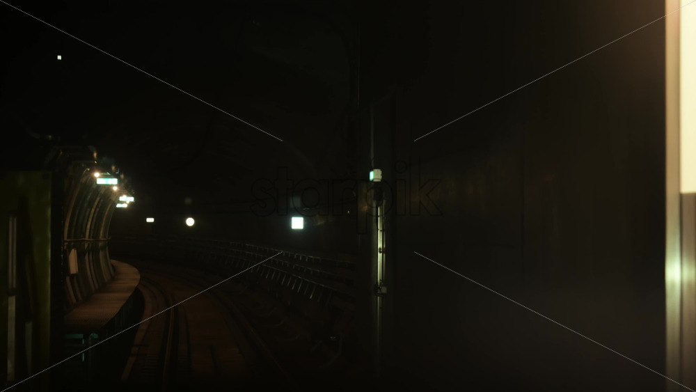 Copenhagen, Denmark – August 4, 2025: Subway tunnel showing abstract light reflections on vertical translucent panels along the tracks Royalty Free Stock Video Footage