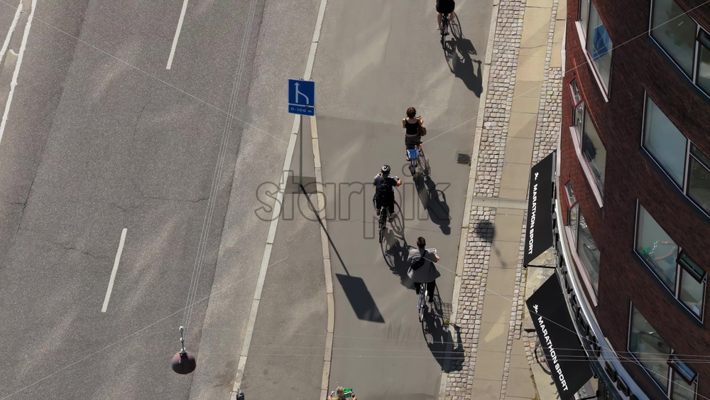 Copenhagen, Denmark – August 6, 2025: Aerial drone view of cyclists filling Copenhagen’s bike lanes during a busy day Royalty Free Stock Video Footage
