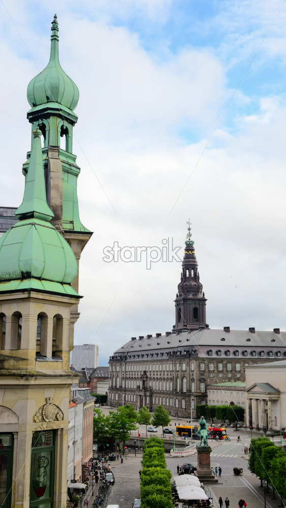 Copenhagen, Denmark – August 6, 2025: Christiansborg Palace tower rising over central Copenhagen and historic buildings Royalty Free Stock Video Footage