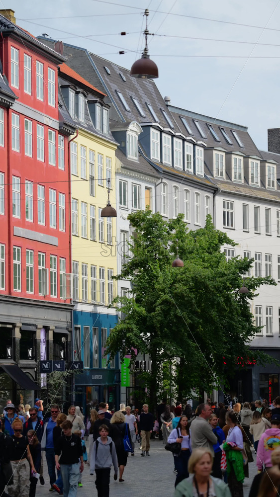 Copenhagen, Denmark – August 7, 2025: People walking on a busy European shopping street with historic architecture under a cloudy sky Royalty Free Stock Video Footage
