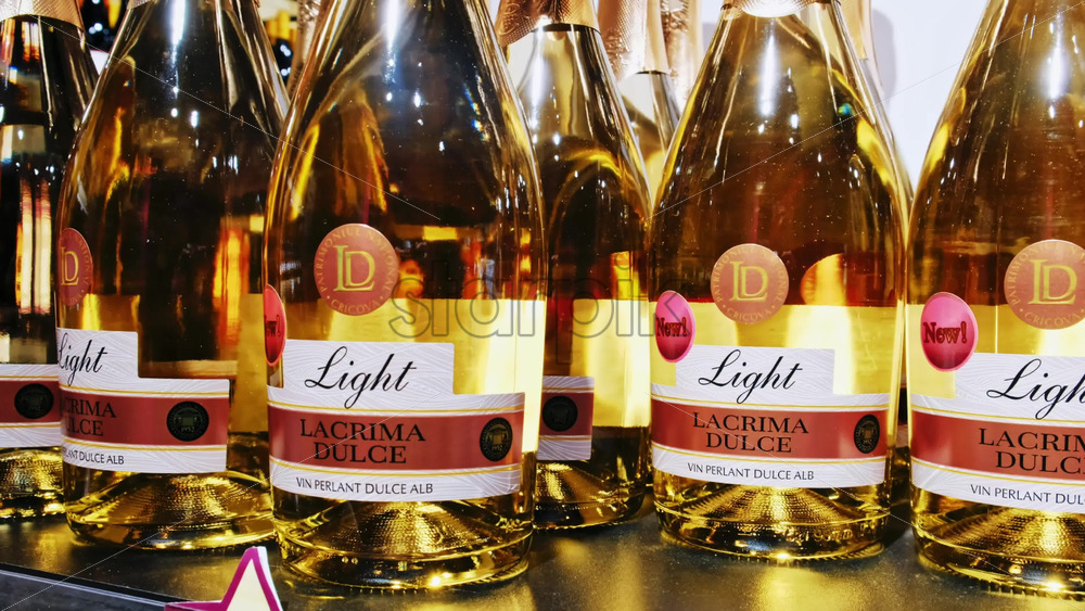 CRICOVA, MOLDOVA – APRIL 6, 2021: White champagne bottles in the winery Royalty Free Stock Video Footage