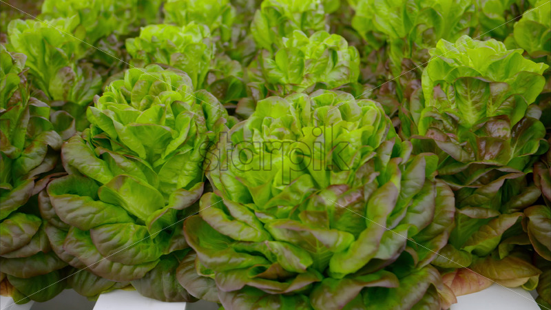 VIDEO Different types of lettuce grown with the Hydroponic method in a greenhouse Royalty Free Stock Video Footage